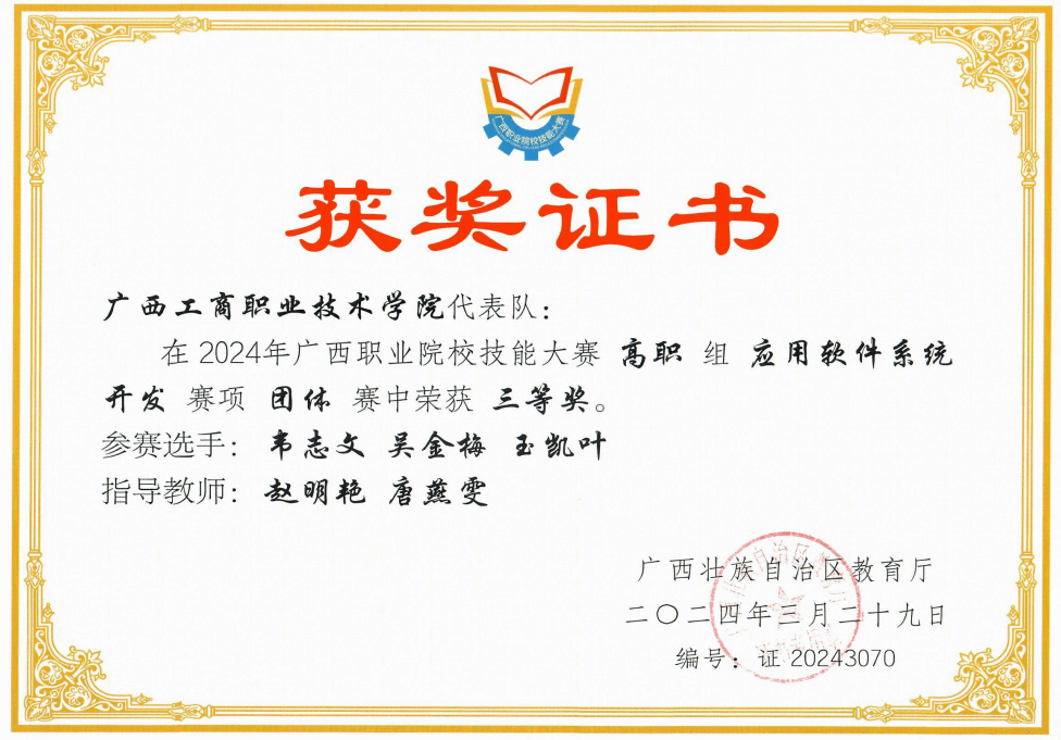 学生在技能竞赛中获奖