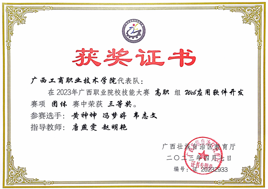 职业技能竞赛获奖证书