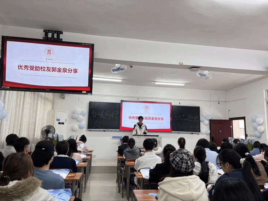 活动以榜样分享开场。2020级优秀校友郭金泉结合自身经历,讲述了在国家与学校资助下完成学业、并最终成长为高校辅导员的历程。2024级学生代表杨正靖通过视频,分享了自身在学院支持下专注技能学习、投身竞赛与志愿服务的成长故事。新生代表苏心悦则表达了对未来的规划与信心。校友及学生们的讲述,生动展现了奋斗与感恩的力量。