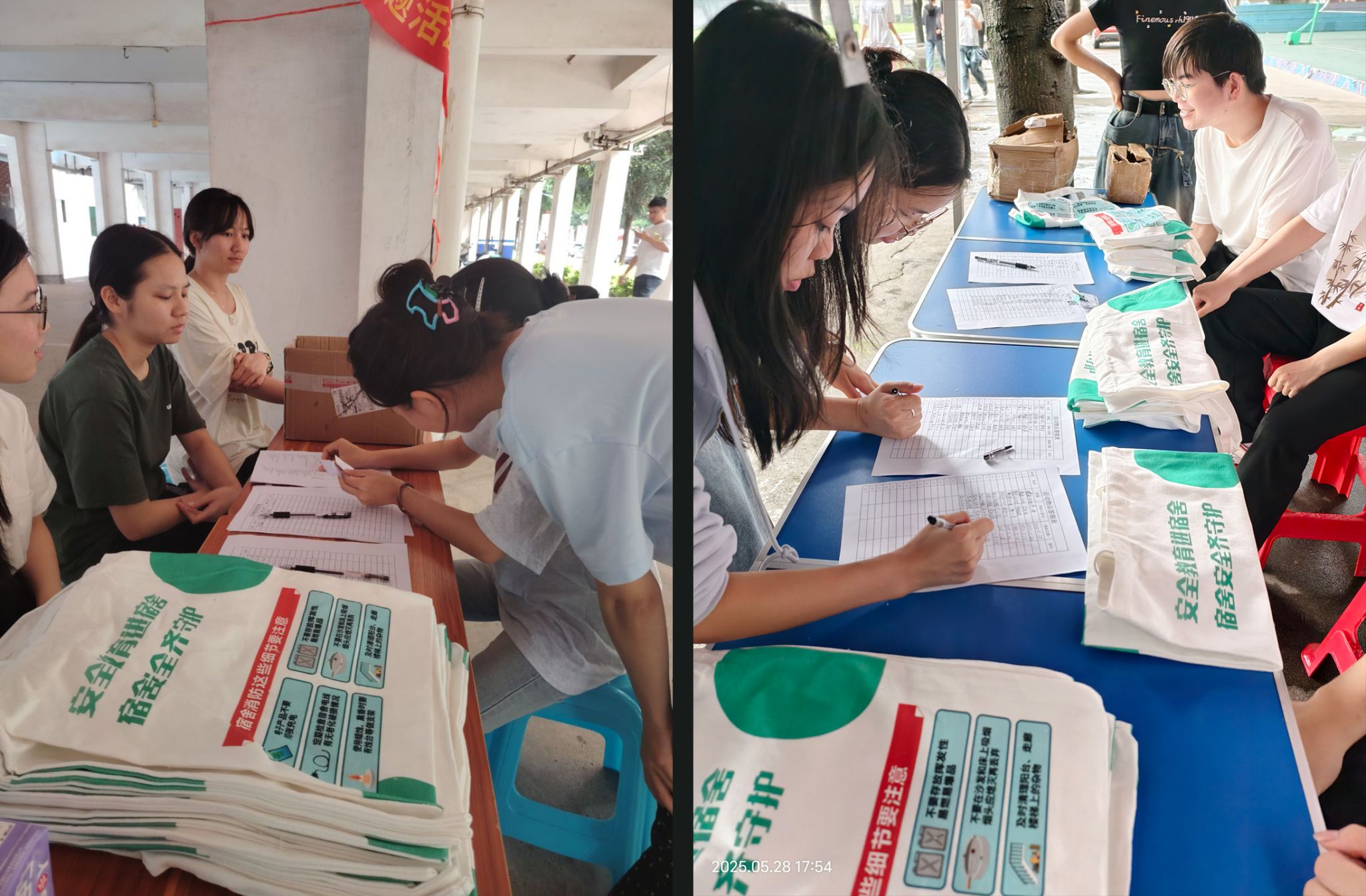 28日中午及下午放学期间为系列活动的安全知识有奖问答活动,学院分别在中尧校区和鹏飞校区学生宿舍楼下开展。在活动现场,学院制作了安全教育倡议书签名墙,该倡议书明确要求学生遵守学校安全规定,提高自我保护意识,积极参与安全教育活动。同学们纷纷在签名墙上签名,表达了对安全教育的重视和对自身安全的负责态度。在中尧校区8栋宿舍楼门前,同学们排起了队伍,有序参与答题;鹏飞校区3栋宿舍楼架空层也热闹非凡,同学们在答题过程中互相讨论,分享安全知识。许多学生表示,通过这次活动,不仅巩固了安全知识,还获得了实用的奖品,非常有意义。