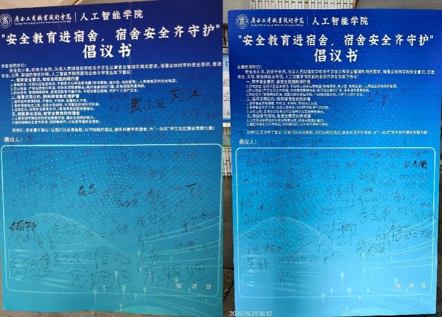 为提高学生的安全意识,加强“一站式”学生社区建设,营造安全、和谐的校园环境,2025年5月27日至28日,人工智能学院于中尧和鹏飞校区开展“安全教育进宿舍,宿舍安全齐守护”安全教育系列主题活动。