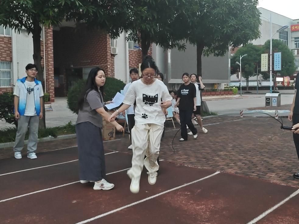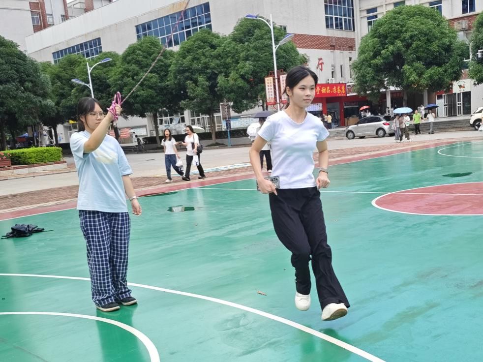 集体项目的筛选过程同样精彩。“8”字跳绳现场,摇绳的同学节奏稳定,跳绳的同学身姿轻盈,在绳间灵活穿梭,他们配合默契,以最快的速度完成“8”字穿梭,展现出强大的团队协作能力,每一次成功的跳跃都凝聚着团队的智慧与汗水。