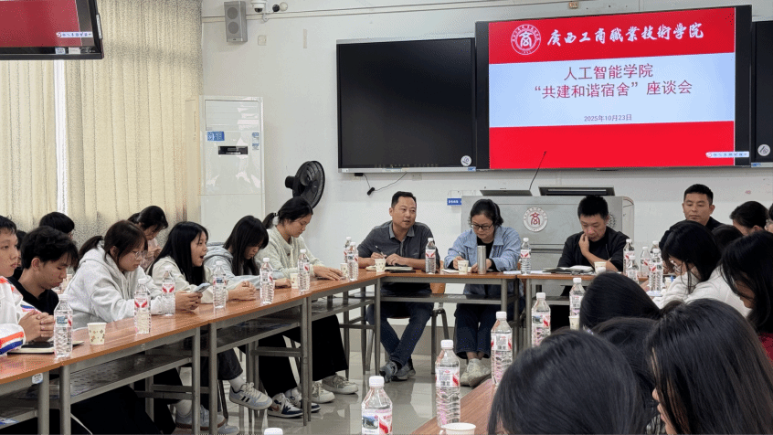 为深入贯彻校园安全发展理念,推动“一站式”学生社区建设走深走实,10月23日下午,人工智能学院在鹏飞校区2320教室举办“共建和谐宿舍”主题座谈会。学院党总支书记庞良、副院长阙玲丽、党委学生工作部宿管科负责人张东升、后勤管理处水电科科长梁娟、膳食科科长周林、辅导员代表以及50余名学生代表齐聚一堂,围绕宿舍安全管理、服务优化与学生自我管理展开深入交流。