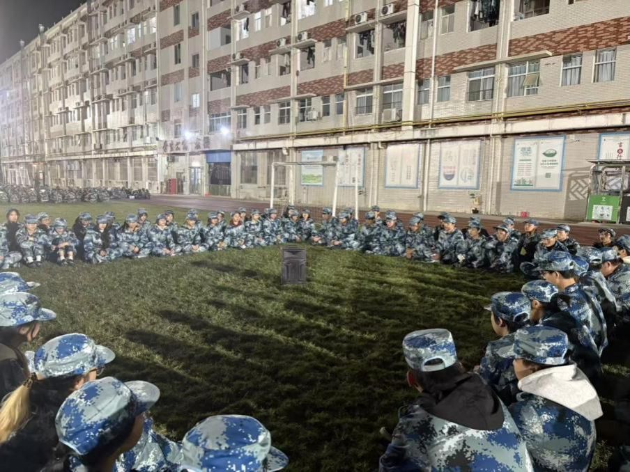 有人搓着冻红的双手率先起调,粗犷却饱含热忱的军歌声穿透冷雾,很快汇聚成震天动地的合唱。对面连队不甘示弱,以更嘹亮的嗓音强势回应,歌词中偶尔夹杂的俏皮调侃,引得全场哄堂大笑。寒风虽烈,却吹不散眼底的热忱;夜色虽浓,却掩不住脸上的明亮笑容。歌声、掌声、呐喊声交织在一起,在冬夜的操场上盘旋缭绕,成为军训时光里最难忘的记忆。