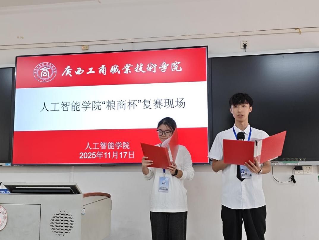 为深化学生对行业岗位的认知,提升职业规划能力,2025年11月17日,人工智能学院“粮商杯”专业岗位认知大赛在鹏飞校区顺利举行。16支参赛队伍同台竞技,围绕岗位职责、能力需求与发展趋势展开深入解析,展现出扎实的专业素养与清晰的职业思考。