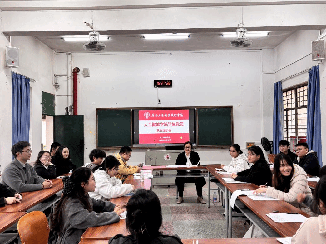 为深入了解实习生党员求职进展,针对性提供就业指导,12月27日,人工智能学院召开实习生党员就业座谈会。学院党总支书记庞良、学生第一党支部书记阙玲丽及相关辅导员与即将毕业的学生党员围绕职业规划与发展展开交流。