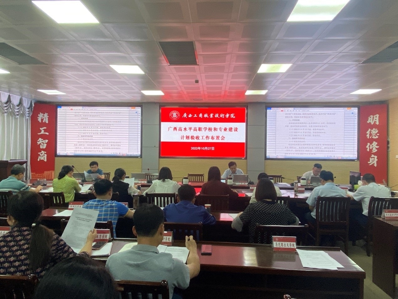 根据《自治区教育厅关于开展广西高水平高职学校和专业建设计划验收工作的通知》(桂教职称[2022]55号)(以下简称“通知”)要求,学院于2022年10月27日上午在鹏飞校区2119会议室召开广西高水平高职学校和专业高水平专业建设计划验收工作布置会,解读“双高计划”验收工作要求,部署校内迎检工作。李维院长、阙勇平副院长、各部门、各单位主要负责人、粮油食品专业群负责人和主要成员,“双高”建设各子项目相关负责同志,“双高”建设办公室相关同志参加会议。会议由阙勇平副院长主持。