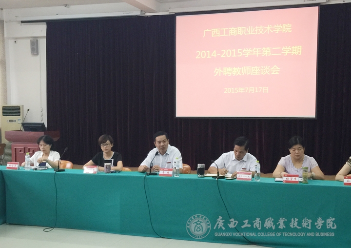 7月17日上午11:00,我院2014-2015学年第二学期外聘教师座谈会在校本部教学楼2145报告厅召开,学院副院长李维、教务科研处处长韦胜强、师资科科长李青、各教学系主任、教学副主任、教研室主任和来自3个教学系及公...