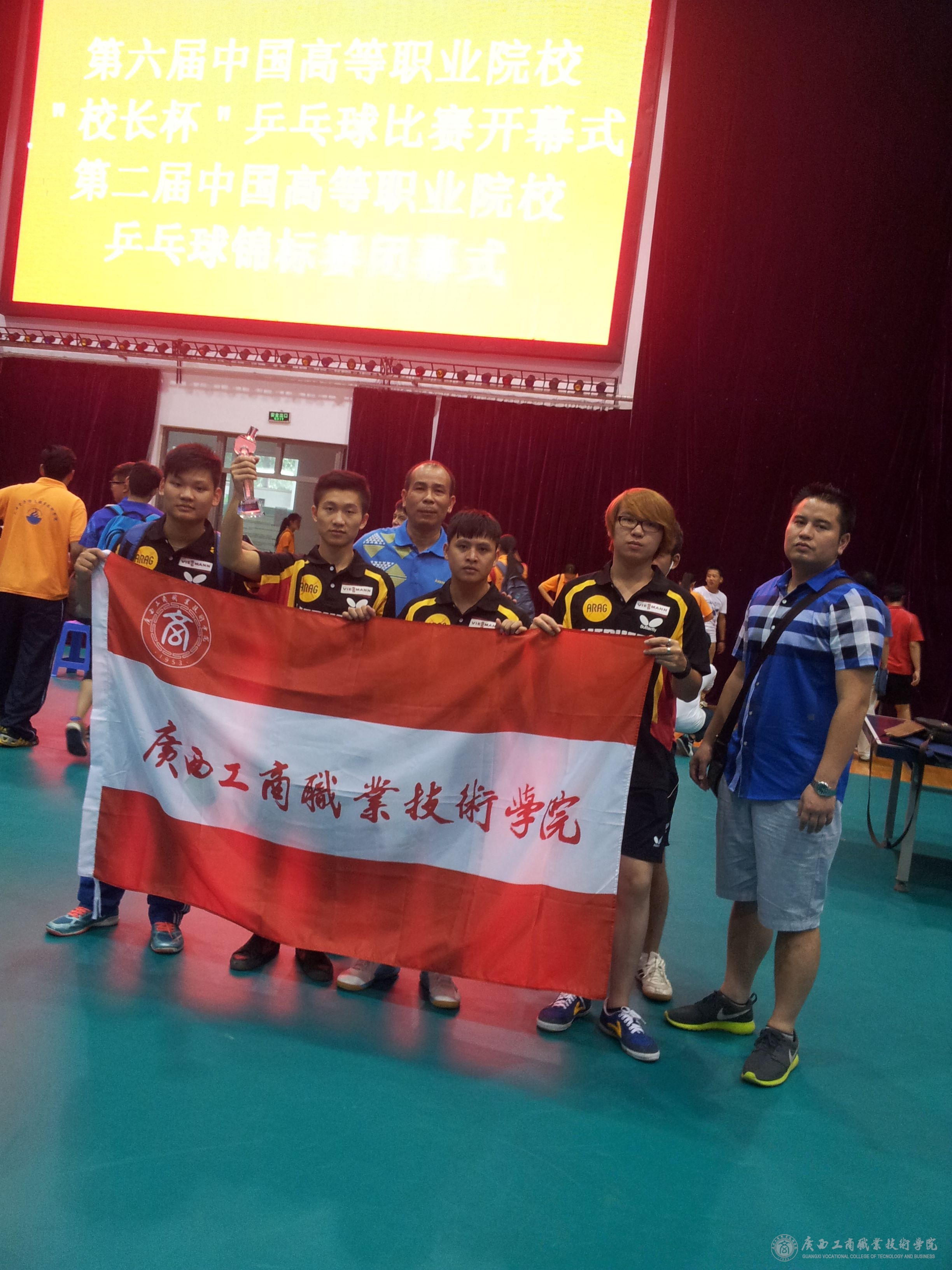 第二届全国高等职业院校乒乓球锦标赛于2015年7月20-23日在天津电子信息职业技术学院举行。我院派出了由会计系税会1432班王永权、会审1331班潘凌欢、会审1432班郑琪雲、经管系工商1434班黄瑞和、营销1331班赵海荣...