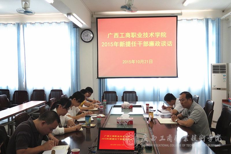 10月21日上午,学院纪委办公室组织召开2015年新提任干部廉政谈话会。学院党委副书记、纪委书记蒙启成对新提任干部进行谈话,2015年新提任干部参加了会议。 会上,蒙启成指出本次谈话的目的、意义和必要性。他谈到...