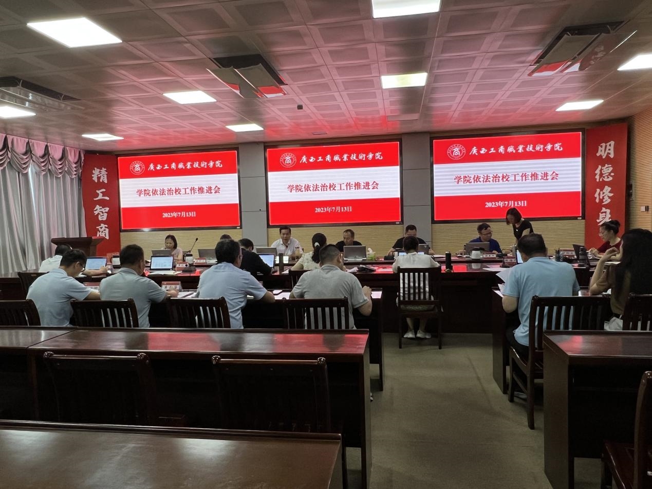 (会议现场)2023年7月13日上午,我院在鹏飞校区教学楼2119视频会议室召开依法治校工作推进会。学院院长、党委副书记、学院依法治校工作领导小组组长李维主持会议。会上,党委办公室(学院办公室)主任、学院依法...