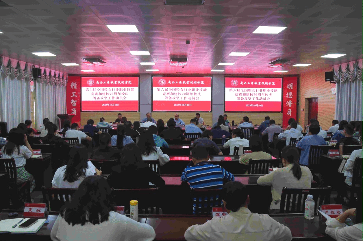 举全院之力,聚全员之智。10月10日,我院召开第六届全国粮食行业职业技能竞赛和建校70周年校庆筹备攻坚工作动员会议。学院党委书记覃武云主持会议,学院院长李维做工作动员部署。(大会现场)会上,李维院长围绕...