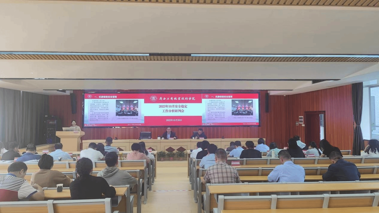 齐抓共管,筑牢安全底线。为迎接第六届全国粮食行业职业技能竞赛及学院70周年校庆,营造安全稳定的校园氛围及环境,10月30日,我院召开10月份安全稳定工作分析研判会,会议由学院副院长陈宁春主持召开,各部门各...