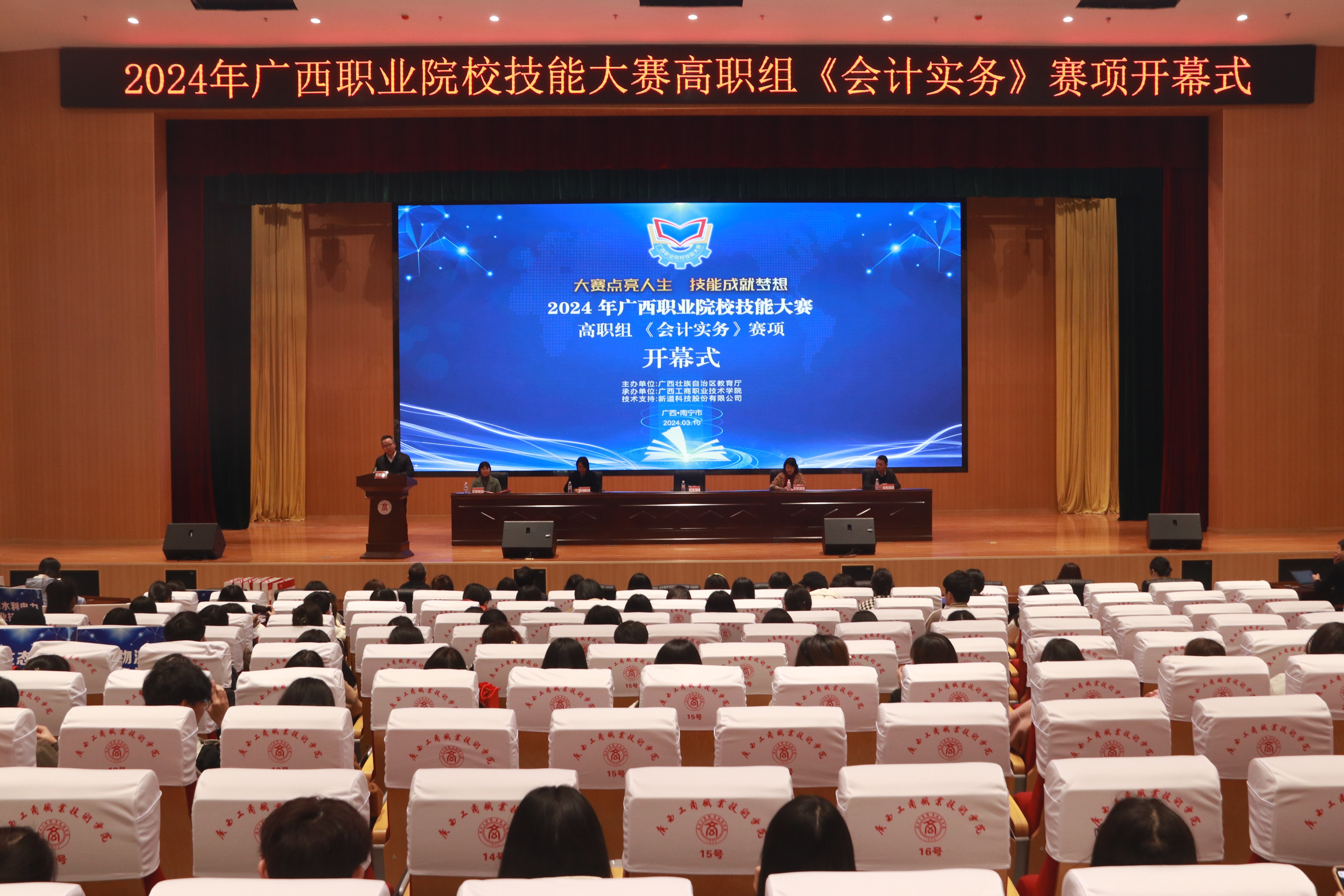 3月11日,由自治区教育厅主办、我院承办的2024年广西职业院校技能大赛高职组《会计实务》赛项在武鸣校区成功举办。来自全区34所高职院校代表队的232名精英同台竞技、展示技能。学院副院长阙勇平出席大赛开幕式并...