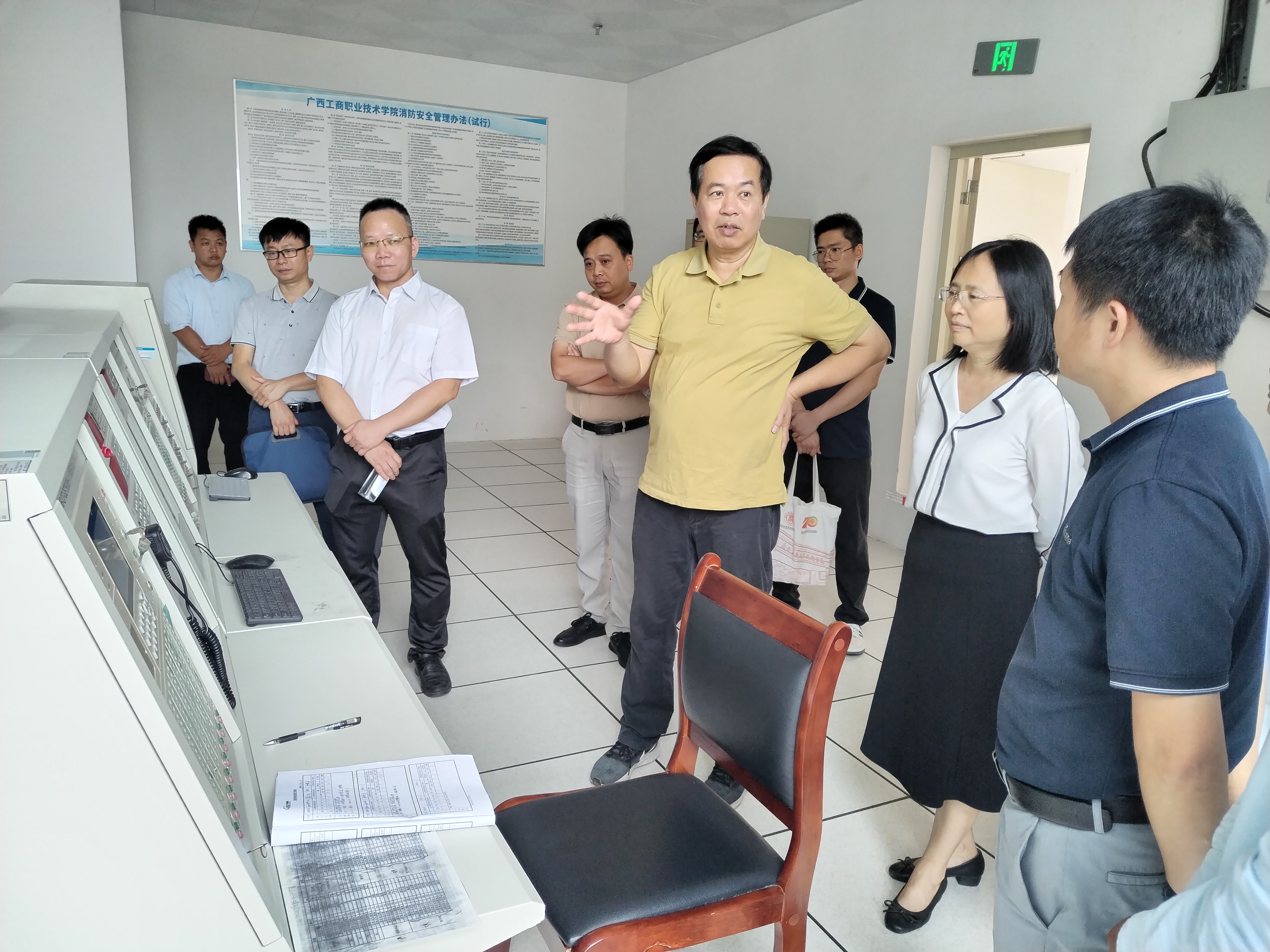 为营造浓厚校园安全氛围,扎实做好校园安全工作,6月12日,学校党委书记李维带队开展校园安全检查,副校长阙勇平,纪委书记韦云凤以及相关职能部门负责人共同参加。(检查消防控制室)(检查监控室)(李维书记指...