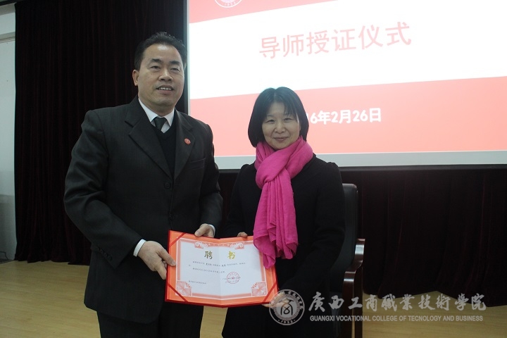 2016年2月26日上午9:15,我院在校本部教学楼2145报告厅举行2016年导师授证仪式。学院领导班子成员以及全体教职工参加了该仪式,仪式由学院党委副书记蒙启成主持。 会上,蒙启成副书记了宣读学院新教师“....