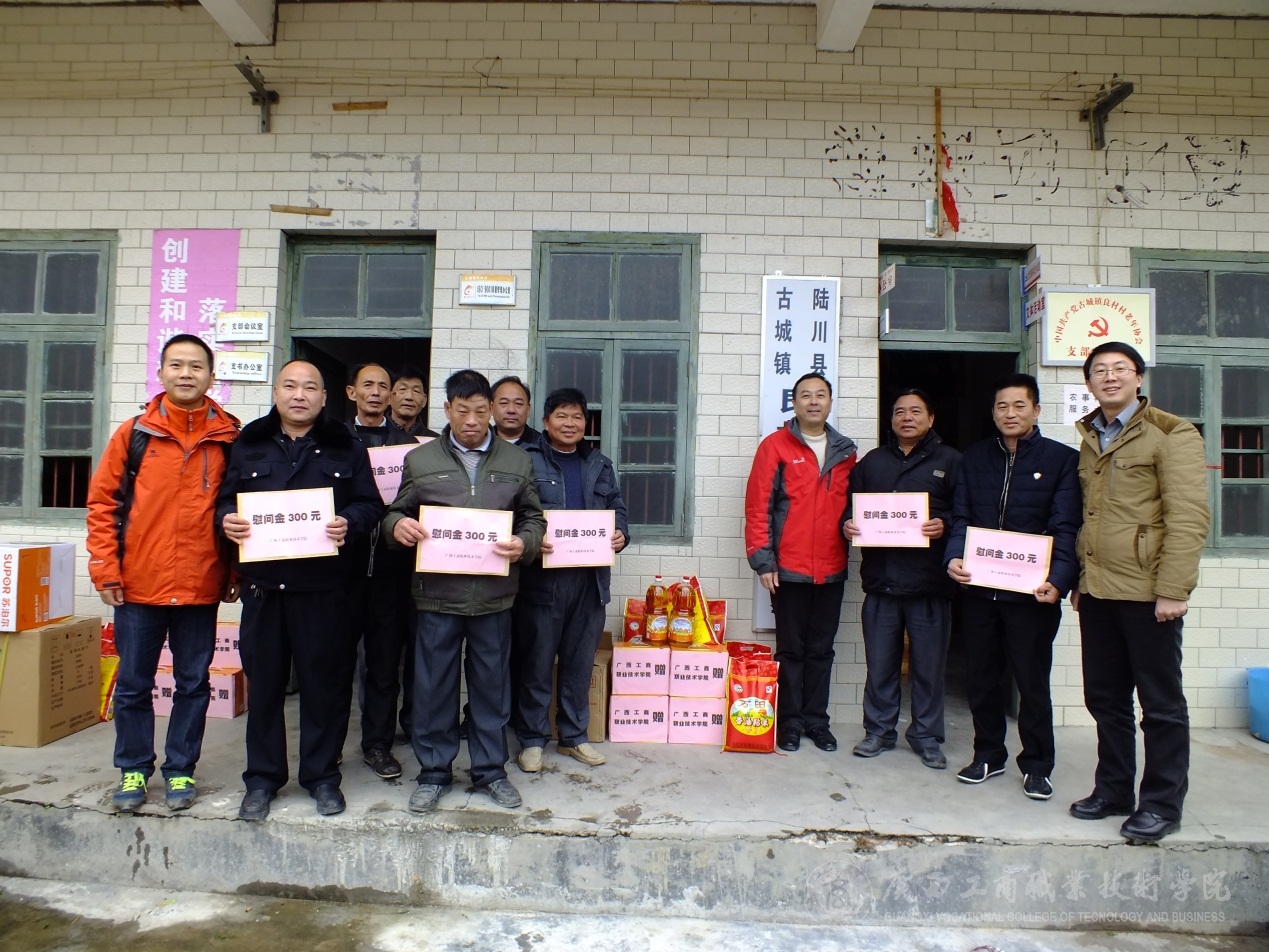2016年新春佳节将至,我院于2月1日至2日开展下基层活动暨慰问学院定点扶贫村基层干部和困难群众活动,学院领导率队前往我院定点扶贫包村点陆川县古城镇良村、马坡镇靖西村、清湖镇水亭村、那若村,珊罗镇四乐村,...