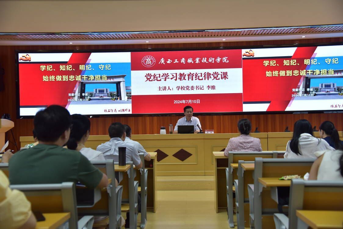 2024年7月2日,党委宣传部党支部、纪委监察室党支部和会计学院党总支在武鸣校区开展“以案说纪,共上一堂‘纪律党课’”联建共建主题党日活动,学校纪委书记韦云凤以《学纪 知纪 明纪 守纪 为推进学校高质量发展...