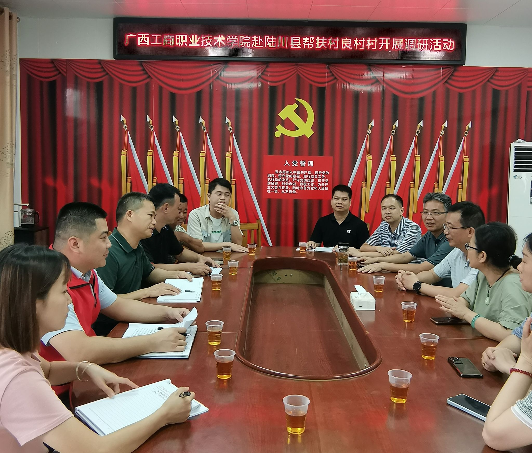 7月2日-3日,学校校长刘进率队深入陆川县水亭村、那若村、良村村、八角村、靖西村、四乐村等6个帮扶点,调研各村产业发展情况,座谈听取第一书记驻村工作开展情况,与镇、村党员干部深入交流,就村庄发展、乡村振...