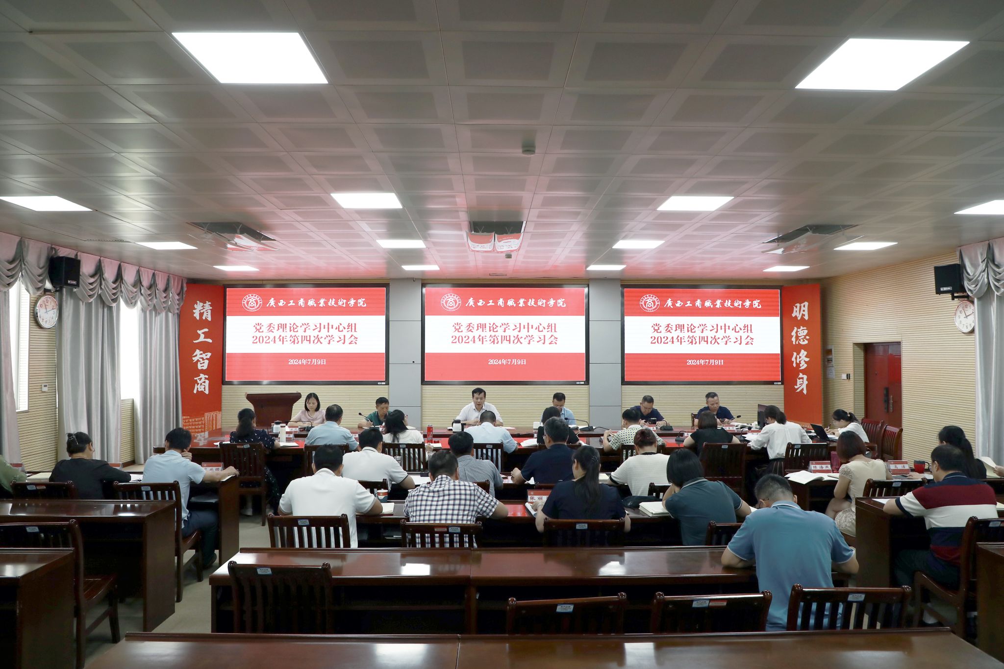 7月9日,pp电子召开党委理论学习中心组2024年第四次学习会,重点围绕习近平总书记关于广西工作论述的重要要求、《中国共产党纪律处分条例》等内容开展学习研讨。学校党委书记李维主持会议并讲话。(学习会现场)副...