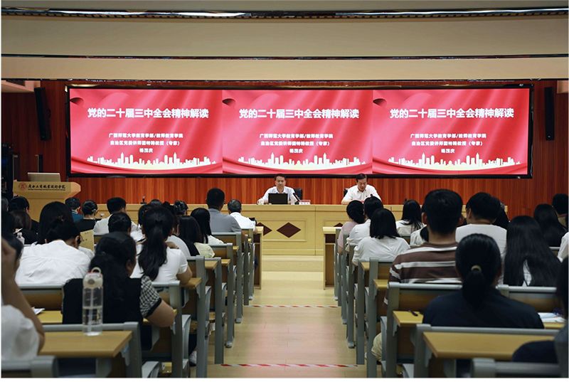 9月20日,自治区党委讲师团特聘教授(专家)、广西师范大学教师教育学院院长、教育学部副部长、教授杨茂庆到pp电子开展学习贯彻党的二十届三中全会精神宣讲活动。全体学校领导,学校全体中层干部,学校各党总支、各...