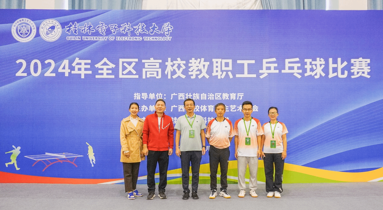 2024年全区高校教职工乒乓球比赛于11月4日—8日在桂林电子科技大学火热开战,来自全区共35支高校队伍近532名运动员、教练员参赛。本次比赛指导单位为自治区教育厅,由广西体育卫生学术学会主办,桂林电子科技大学...