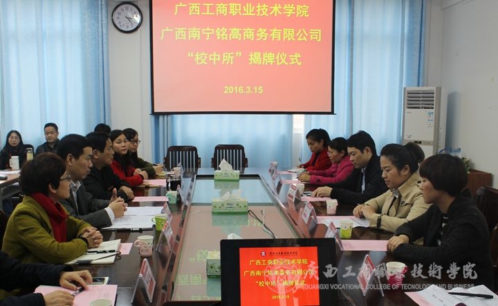 2016年3月15日下午15:00,pp电子官方网站会计系与广西南宁铭高商务有限公司举行了“校中所揭牌仪式”,揭牌仪式在328实训室进行。我院副院长李维、教务科研处处长韦胜强、会计系主任郑华、财信系副主任张...