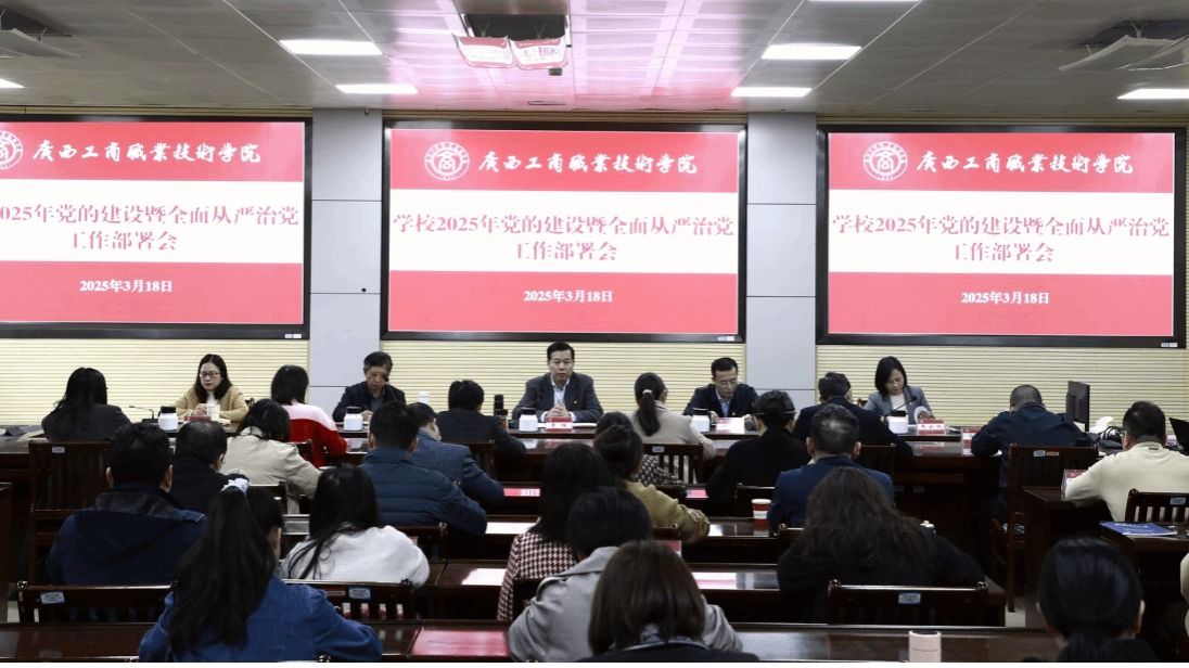 3月18日,学校在鹏飞校区召开2025年党的建设暨全面从严治党工作部署会,学习全区高校党的建设工作会议精神,部署学校2025年党的建设暨全面从严治党工作和学校2025年纪检监察工作。学校党委书记李维,学校校长刘进...
