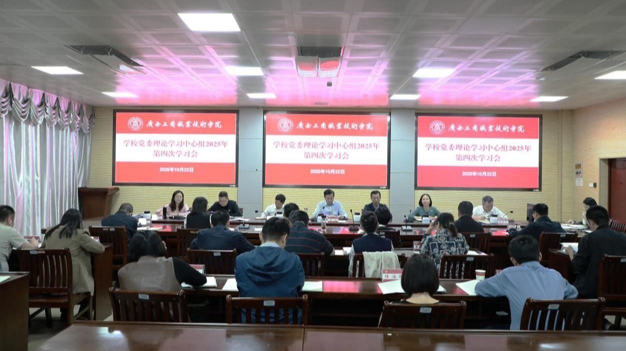 10月22日,学校召开党委理论学习中心组2025年第四次学习会,重点围绕深入学习领会习近平总书记关于广西工作论述的重要要求、深入学习领会习近平总书记关于铸牢中华民族共同体意识的重要论述、深入学习领会《习近...