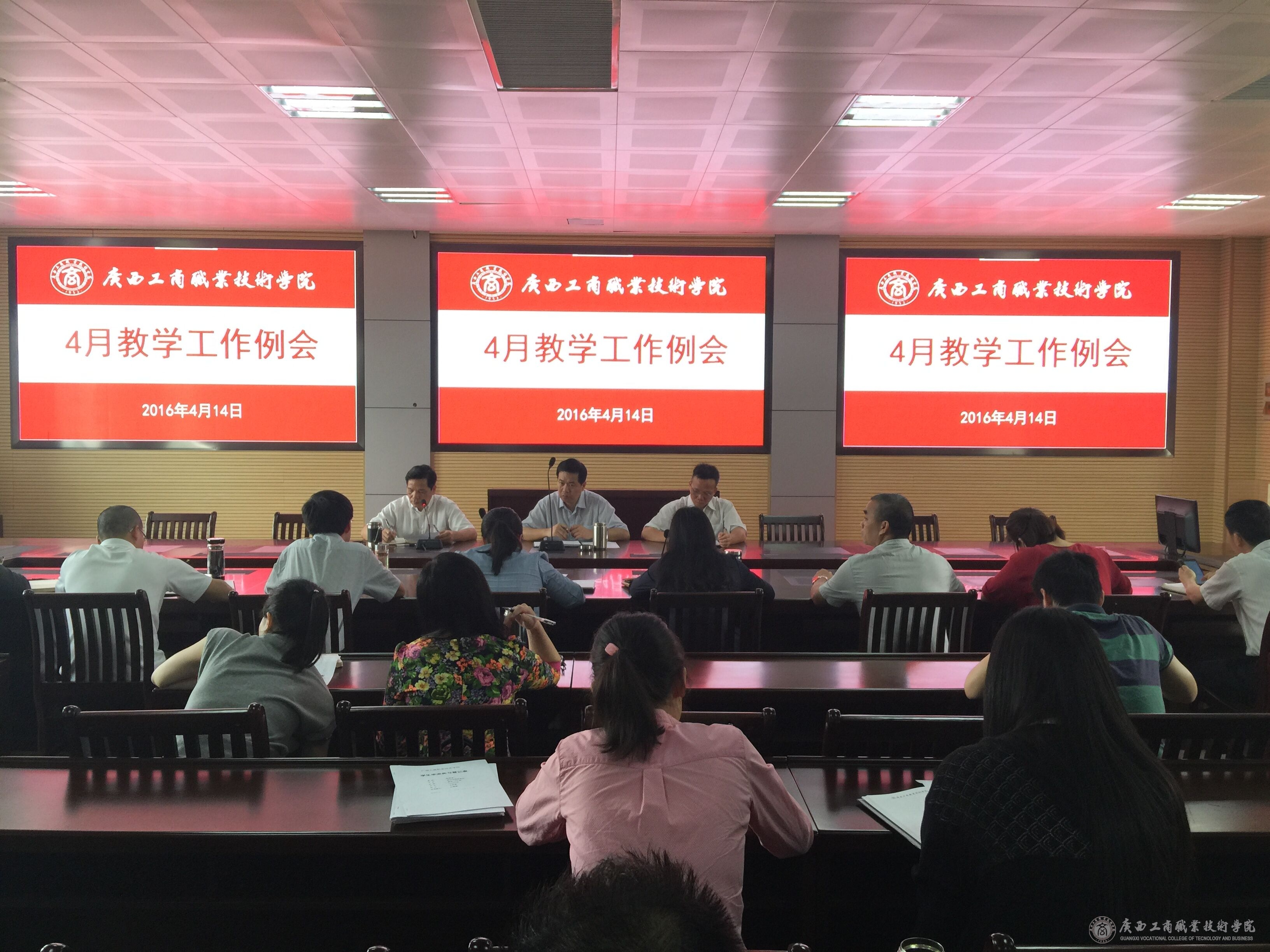 2016年4月14日上午9:30,我院在校本部2119会议室召开教学工作例会。学院领导李维副院长、教务处处长韦胜强、党委学生工作部副部长张居设、现教中心副主任梁保恩、评估办副主任刘邦俊、各系分管教学副主任、顶岗实...