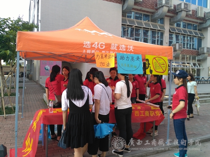 2016年6月6日下午5点整,我院营策1431班部分同学在学校食堂门口对面进行“支持高考,禁音行动签名送祝福”活动。此公益活动由营销教研室蒋文全老师指导,有5名同学参加。 ...