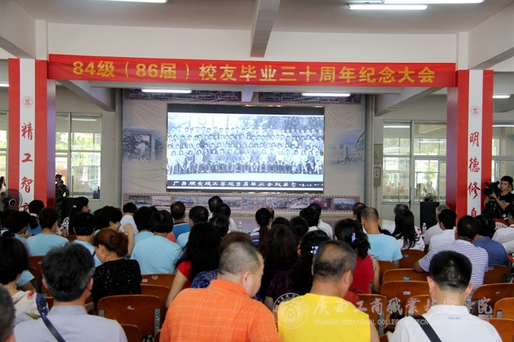 2016年6月26日上午, 我院1984级校友们从四面八方汇聚母校广商院,参加在我院校本部文体馆一楼举行的84级(86届)校友毕业三十周年纪念大会。学院党委书记覃武云、院长陈杰、副院长李维、有关中层干部、84级校友...