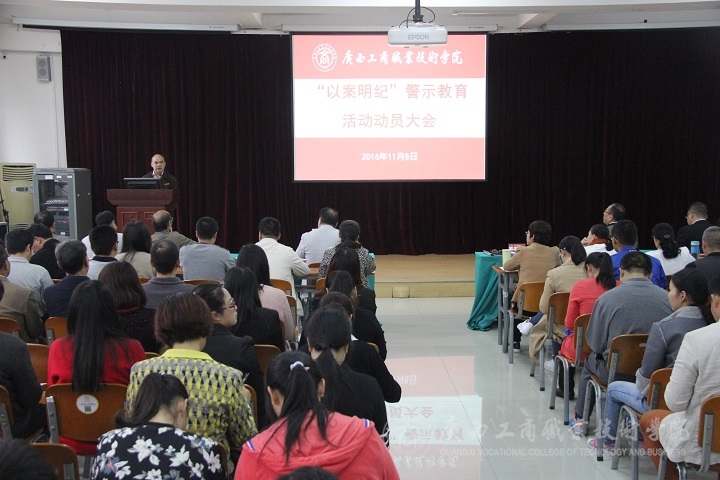 2016年11月8日下午,我院在校本部教学楼2145报告厅召开“以案明纪”警示教育活动动员大会。学院党委书记覃武云、党委副书记、院长陈杰、党委副书记、纪委书记蒙启成、副院长李仕钦,学院全体教职工参加了本次动员...