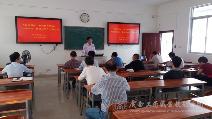 根据学院《“以案明纪”警示教育活动的实施方案》(广商院党字[2016]109号)学习教育阶段的工作部署,2016年11月15日,现代教育技术中心全体人员在2303教室开展了“以案明纪,警钟长鸣”教育专题学习。学习活动以...