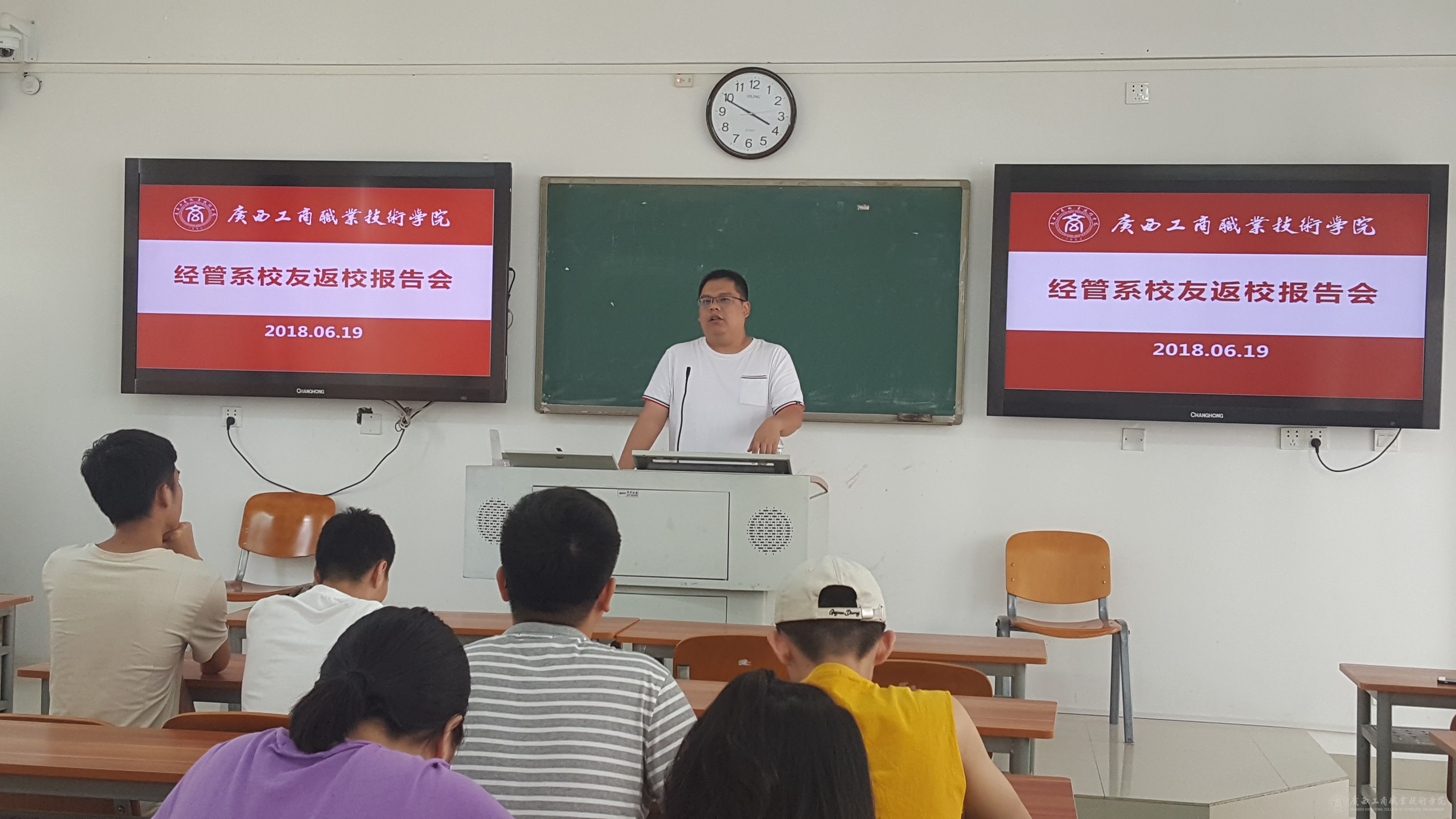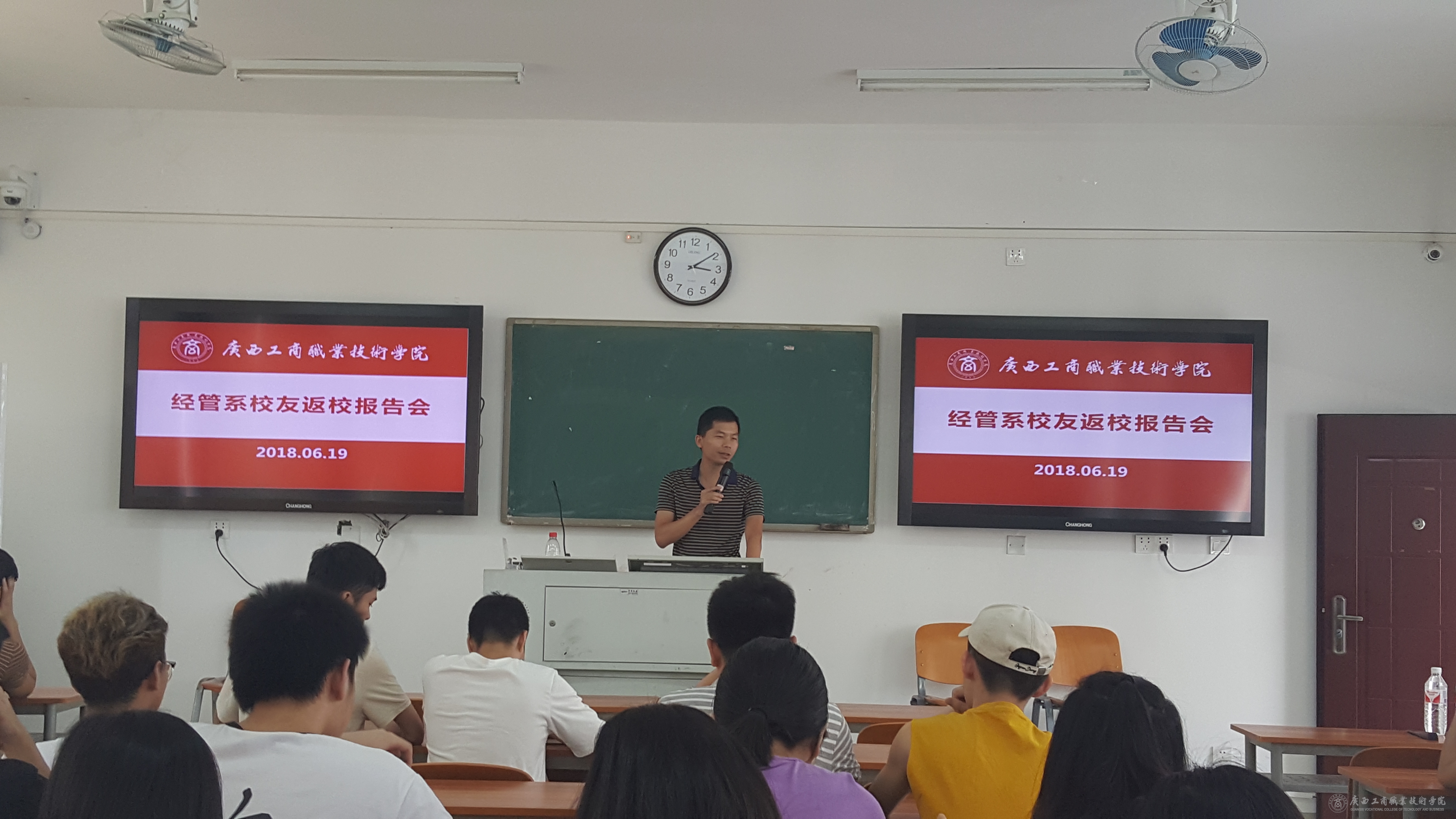 2018年06月19日下午,经管系08届毕业生市场营销专业两位学长黄桂棠、彭柏池回到母校,与市场营销专业大二的学弟学妹们做了一次生动的报告,跟同学们分享了他们的求学历程、工作体验和创业感想。参加本次报告会的还有教务科研处副处长李红梅教授和经管系梁昕副主任。报告会由梁昕副主任主持。