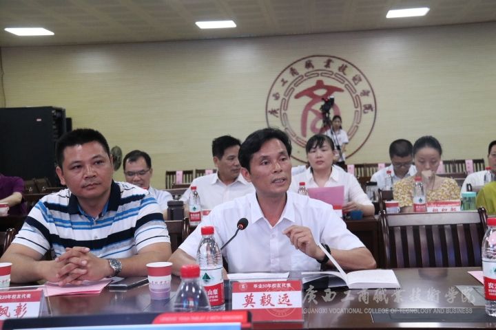 6月22日下午,pp电子官方网站在鹏飞校区会议厅举办学院发展座谈会。pp电子官方网站党委书记覃武云、院长陈杰、党委副书记蒙启成、副院长李仕钦、副院长李维、副院长陈宁春出席会议,学院各部门、各单位主要负责人、校友办、各系系校友组全体人员、四个年代校友代表(毕业30年、20年、10年、今年)、 四个年代入职教师代表(入职 30 年、20 年、10 年、今年)参加会议。 座谈会由院长陈杰主持。会上,陈杰介绍了参会人员,并对返校的毕业校友代表及教师代表的到来表示热烈欢迎。紧接着,覃武云向大家简要通报学院改革发展情况,主要讲三方面情况。
