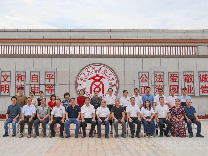 会上,行业代表刘俊、退休教师代表甘敏军,校友代表覃谋、朱姗姗,教师代表李朝锋、王娟,自治区优秀毕业生邓濠锴围绕“同庆建党百年 共促学院发展”为主题做简短发言,回忆起教书、就业、下乡扶贫、求学等时光,回望粮食学校再到现在的广商院,见证和收获成长,师生们都在广商院的发展中成才,成为推动学院和社会发展的中坚力量。走进武鸣校区,校友们感叹学院发展的速度,也表达了对学院的骄傲之感和美好祝愿。