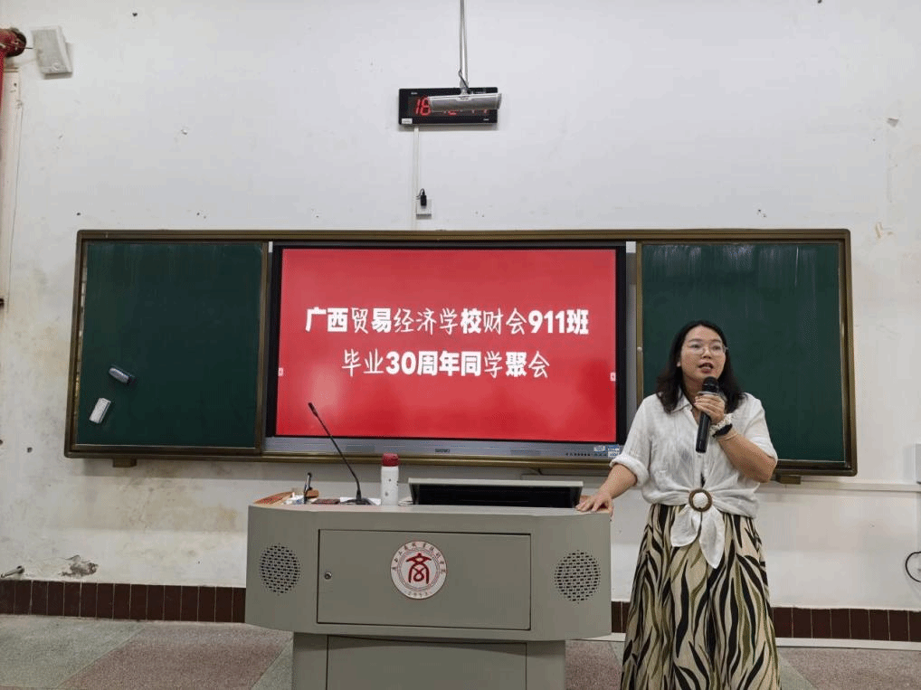 下午15:30,校友们来到熟悉的第二教学楼101教室。吴老师再次步入教室,站上讲台,一堂充满温情的“特别一课”娓娓道来,仿佛时光从未流逝。随后,周老师接过话筒,她不仅主持了一场欢声笑语的主题班会,更如数家珍般地和同学们回忆30年前大家在校园里有趣的生活和学习情境。两位老师的倾情分享,一瞬之间便将所有校友拉回了那段最纯粹的青葱岁月,熟悉的课堂氛围令人无限感慨。